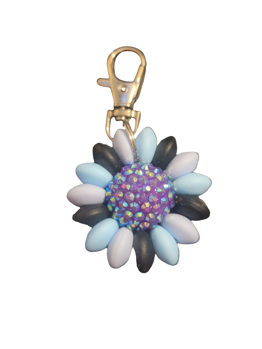 This Blue Clip is silicone and acrylic beads. This clip can go on purse, bags, keychain, or small eyelet.
